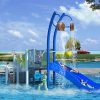 The Outdoor Water Playground is very easy to be recognized from far away because it has various bright colors that are kids’ favorites. The water sprays, slides and stairs offer a good choice to drive away the heat in summers. The sun louver can protect kids from sunburn and the animal models on the top add more joy.